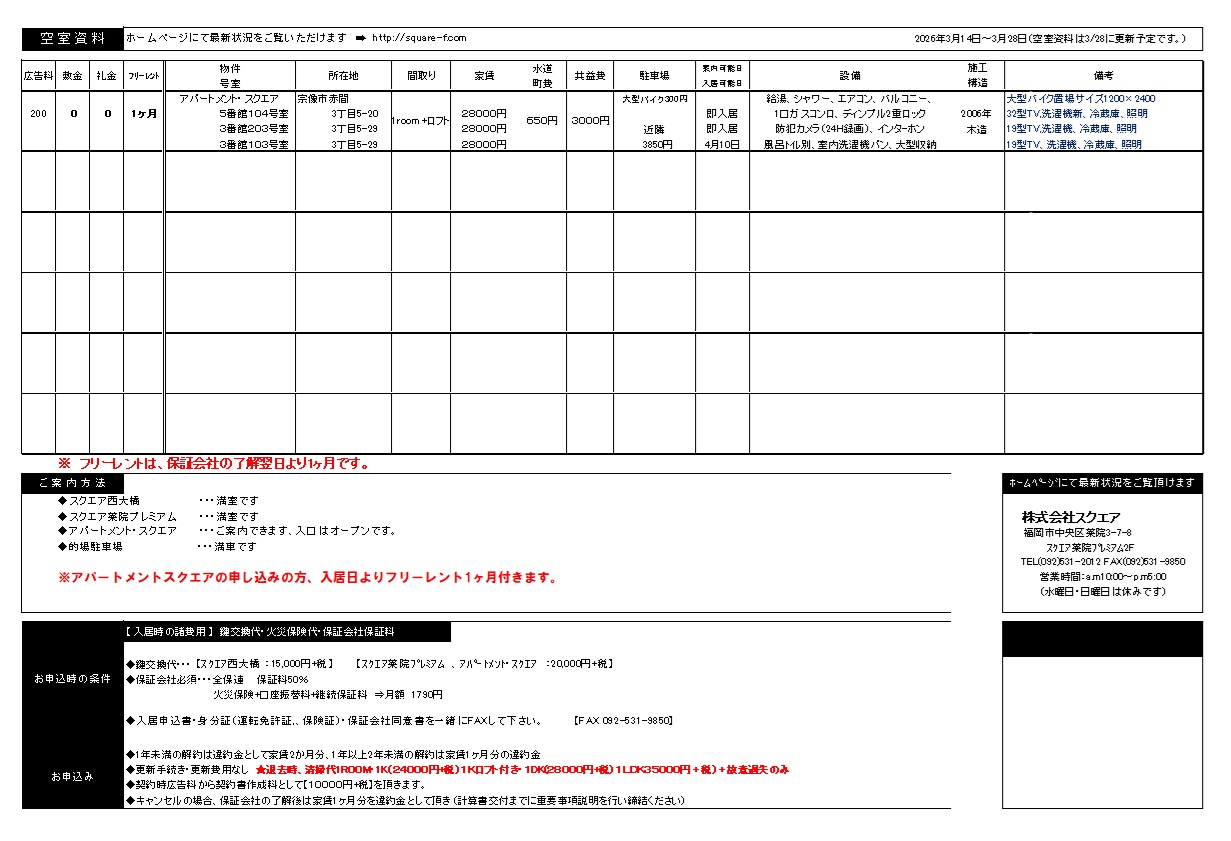 最新空室資料2026/3/14